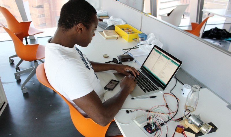 On the tech team, after the wall was essentially under construction and the design was finished in the sense that the major mechanical components were set and weren’t going to change much anymore, we buckled down and started coding interaction with Arduino and some cool sensors.
